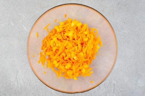 Die Paprika vierteln, entkernen und in 1–2cm große Würfel schneiden. Die Karotte ggf. schälen und grob raspeln. Das Gemüse mit der Limettenschale, dem übrigen Limettensaft, ½TL Kreuzkümmel-Koriander-Gewürzmischung und je 1 Prise Salz und Pfeffer zu einem Salat vermengen. Nach Geschmack mit etwas mehr Kreuzkümmel-Gewürz sowie Salz und Pfeffer verfeinern.