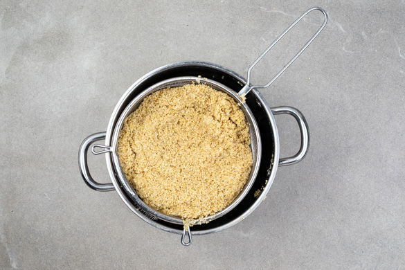 Den Backofen auf 200°C Umluft (220°C Ober-/Unterhitze) vorheizen. In einem mittelgroßen Topf leicht gesalzenes Wasser zum Kochen bringen. 2/3 der Quinoa in einem Sieb unter klarem Wasser abspülen, ins kochende Wasser geben und in 10–20Min. bissfest köcheln. In ein Sieb abgießen und warm halten. Tipp: Bei großem Hunger die gesamte Menge Quinoa verwenden.