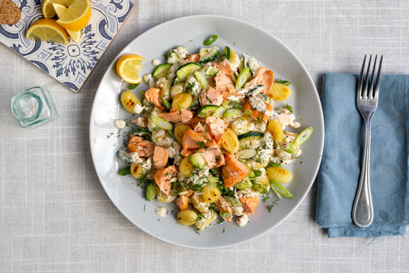 Lockere Gnocchi in einer cremigen Sauce aus Ricotta und Zucchini, alles fein abgeschmeckt mit Dill und frischer Zitrone, dazu saftiger Räucherlachs – da muss man gar nicht mehr viel sagen: Das schmeckt und geht schnell!
