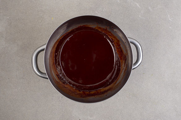 Einen kleinen Topf ca. 3cm Wasser hoch mit Wasser befüllen und dieses zum Kochen bringen. Die Hitze reduzieren, die Schokolade in eine hitzefeste Schale geben und auf den Topf mit dem Wasser setzen. Die Schokolade mit dem Orangenwasser schmelzen, dabei gut umrühren. Das heiße Wasser im Topf für später beiseitestellen.