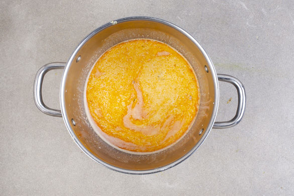 Inzwischen in einem großen Topf 1EL Pflanzenöl bei mittlerer Hitze erwärmen und den Ingwer und den Knoblauch mit ca. 1/3 der Currypaste verrühren. Tipp: Wer es schärfer mag, kann auch mehr Currypaste verwenden. Mit der Kokosmilch und 300ml Wasser ablöschen und mit Salz abschmecken. Die Suppe einmal aufkochen lassen.