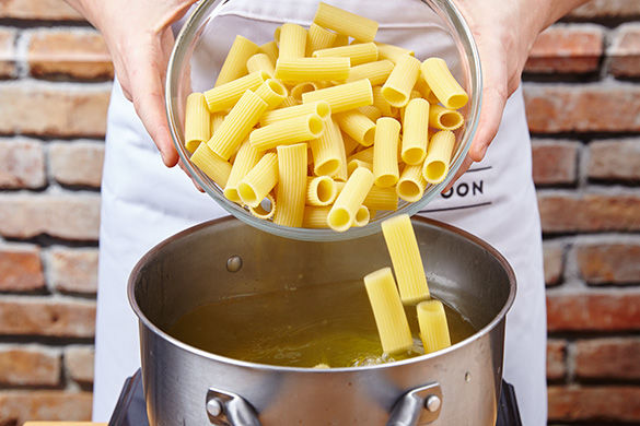 Die Rigatoni in ausreichend gesalzenem Wasser ca. 8Min. bissfest gar kochen.