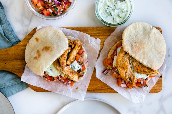 Hähnchen-Schawarma im Brot ist zu Recht ein Klassiker der orientalischen Küche. Der Orient ist gerade zu weit weg? Kein Problem, wir liefern dir heute alles, was du brauchst, um diesen Genuss ganz easy selbst zu erleben: zartes Hähnchenfleisch und die richtige Würzmischung, knackig-frische Gurke, Zwiebel und Tomaten, cremigen Joghurt, Kräuter satt und Pitabrot!