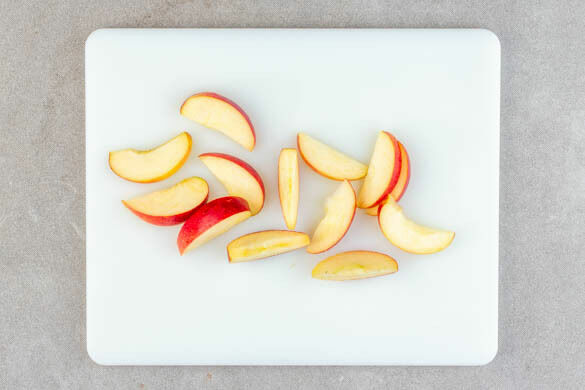 Den Apfel halbieren, entkernen und in ca. 1cm breite Spalten schneiden.