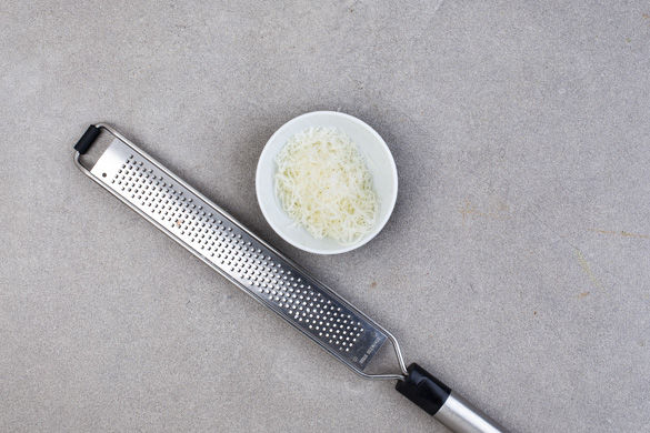 Die Zwiebel schälen und fein würfeln. Den Knoblauch schälen und fein hacken.