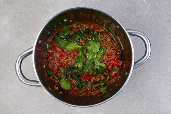 In Italien wird die klassische Sauce bolognese mit Tagliatelle serviert oder in Lasagne geschichtet – die bei uns geläufige Variante mit Spaghetti wird man dort vergeblich suchen. Jetzt sind wir noch frecher und servieren köstliche, goldbraun gebratene Schupfnudeln zur feinen Hackfleischsauce, die wir zudem mit zartem Babyspinat anreichern.