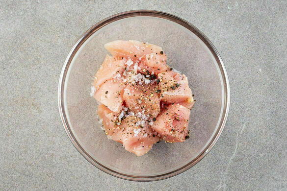 Den Backofen auf 220°C (200°C Umluft) vorheizen. Das Fleisch trocken tupfen und mit je 1 kräftigen Prise Salz und Pfeffer würzen.