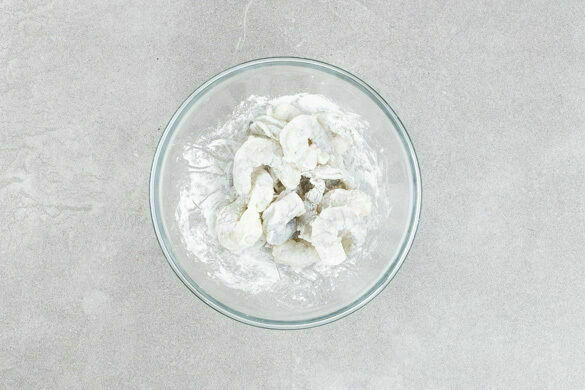 Das Fleisch trocken tupfen und mit der Maisstärke und 1 kräftigen Prise Salz vermengen.