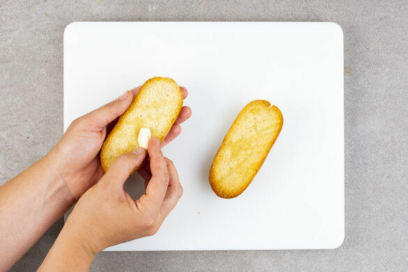 Die Brötchenhälften mit der übrigen Knoblauchhälfte einreiben. Die Suppe auf tiefe Teller oder Schalen verteilen, mit 1 Prise (frisch gemahlenem) Pfeffer garnieren und mit den gerösteten Brötchenhälften servieren.