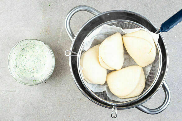 Die Korianderblätter von den Stängeln zupfen, fein schneiden und mit 2EL Essig und 2EL Mayonnaise zu einem Dressing verrühren. Tipp: Die Stängel einfrieren und das nächste Chili damit verfeinern. Die Hefebrötchen in den mit Backpapier ausgelegten Dampfbehälter geben und ca. 7Min. abgedeckt dämpfen.