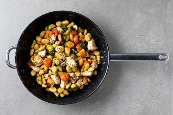 Hähnchenbrustfilet ist ein Allrounder, wenn du nicht lange in der Küche stehen möchtest und es am Ende allen schmecken soll, Groß und Klein. Heute begleitet das zarte Fleisch, sanft gebraten mit frischem Oregano, leckere Gnocchi mit Zucchini und Kirschtomaten. Ein Hauch Zitrone rundet alles fein ab.