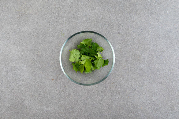 Inzwischen die Korianderblätter von den Stängeln zupfen.