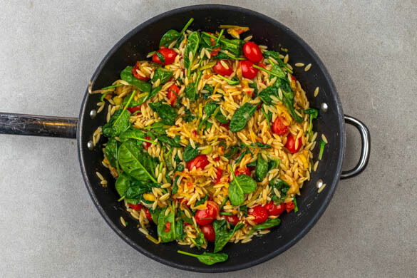 Manchmal muss es halt schnell gehen – und trotzdem soll’s doch lecker sein. Hier kommen wir ins Spiel! Feine Risoni, cremiger Feta, Lauch, Babyspinat und Kirschtomaten passen einfach bestens zusammen, vor allem, wenn der Feta mit spritziger Zitrone und aromatischem Dill kombiniert wird. Eine würzige Balsamicocreme setzt einen feinen Akzent.