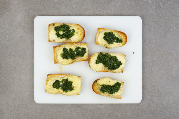 Die Crostini mit ca. 3/4 der Gremolata bestreichen, die restliche Gremolata in die Suppe rühren. Die Minestrone mit Salz und Pfeffer abschmecken und mit den Mozzarella-Gremolata-Crostini servieren. Die Zitronenspalten dazu reichen und nach Belieben über der Minestrone auspressen.