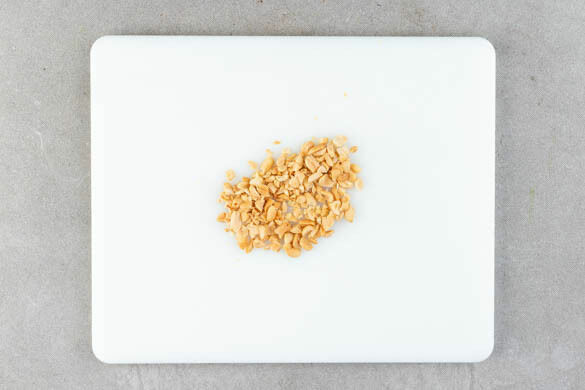 Die Erdnüsse fein hacken. Die Nudeln und das Gemüse mit dem Hackfleisch und der ½ der Sauce in der Pfanne vermengen. Bei mittlerer Hitze ca. 2Min. erwärmen, dann auf Teller verteilen. Die Gurken auf den Nudeln anrichten, mit der restlichen Sauce beträufeln und mit den Erdnüssen garniert servieren.