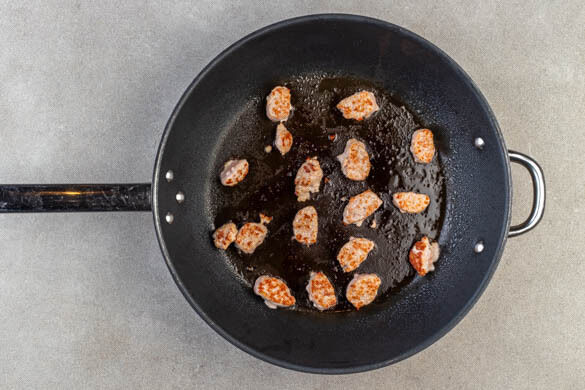 Die Pinienkerne in einer kleinen Pfanne bei mittlerer Hitze ohne Zugabe von Fett 1–2Min. goldbraun anrösten. Zum Abkühlen auf einem Teller beiseitestellen.