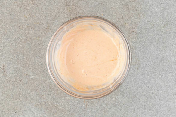 Die Sriracha-Sauce mit 2EL Mayonnaise und 1EL Ketchup vermengen. Tipp: Wenn es weniger scharf sein soll, nur die ½ der Sriracha-Sauce verwenden. Die Brötchen aufschneiden und nach Belieben mit dem Dip bestreichen. Mit den Tomaten, dem restlichen Salat und den Röstzwiebeln füllen und mit dem Karottensalat als Beilage servieren.