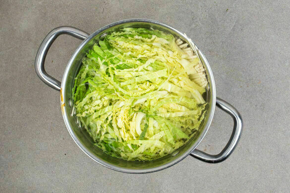 Die Nudeln und den Weißkohl in das kochende Wasser geben und in 4–6Min. bissfest kochen. In ein Sieb abgießen und kalt abschrecken.
