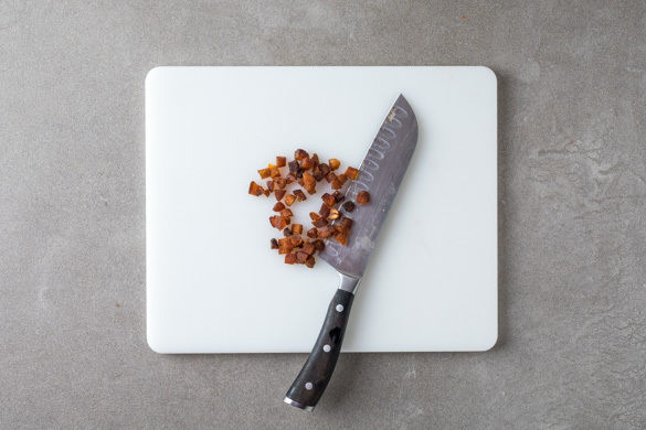 Die Zwiebeln schälen, halbieren und in feine Würfel schneiden. Den Knoblauch schälen und fein hacken.