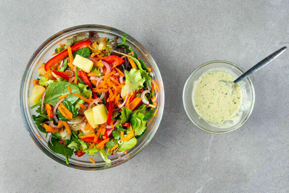 Wir sind verliebt in diesen Thai-Salat, der eine wahre Geschmacksbombe ist! Probier es aus und verfalle auch du der tollen Mischung aus fruchtiger Ananas, gerösteten Cashews, einem knackigen Gemüsemix aus Karotte, Paprika und roter Zwiebel sowie köstlichem Tofu und aromatischem Koriander.
