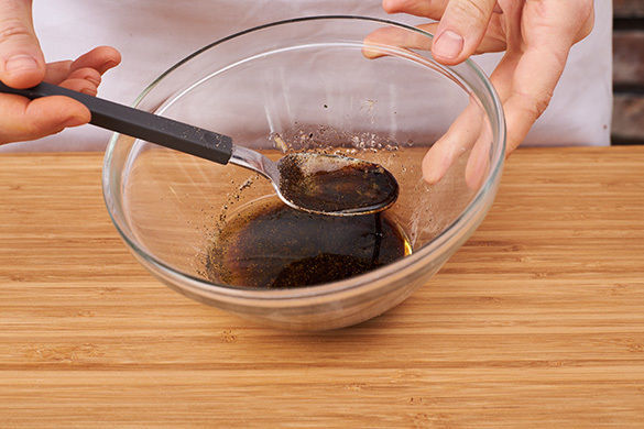 Die Zitronenschale abreiben, dann die Zitrone halbieren und auspressen. 2–3EL Zitronensaft mit der Granatapfelmelasse, 1–2EL Olivenöl sowie etwas Salz, Pfeffer und 1 Prise Zucker zu einem Dressing verrühren.