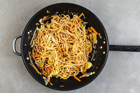 Diese leckeren Udon-Nudeln haben alles, was man braucht, um satt und glücklich zu sein: knusprigen Tofu, ebenso knusprige Austernpilze und einen knackigen Gemüsemix. Doch damit nicht genug! Der geheime Star dieses Gerichts ist nämlich die Sauce: Die besteht aus cremiger Erdnussbutter und einem nussig-würzigen Soja-Sesam-Dressing und wird dich garantiert vom Hocker hauen – keine Sorge, das meinen wir natürlich nicht wörtlich …