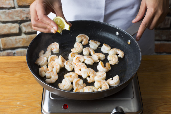 Zwischendurch die Zucchini mit einer Küchenreibe grob raspeln und 6–7Min. vor Ende der Kochzeit zum Risotto hinzugeben und mitgaren.