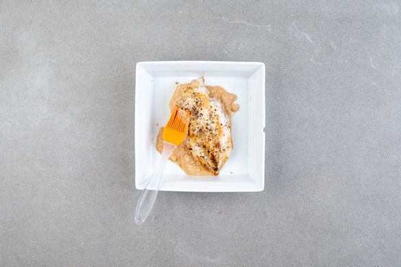 Das Fleisch mit etwas Küchenkrepp trocken tupfen, mit Salz und Pfeffer würzen und in einer mittelgroßen Pfanne mit 1EL Olivenöl bei starker Hitze auf jeder Seite 1–2Min. scharf anbraten. Anschließend von beiden Seiten mit etwas Sataysauce einpinseln und im Ofen 8–10Min. garen, bis das Fleisch durch ist.