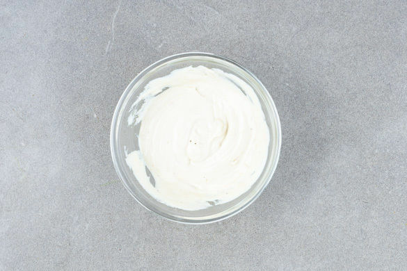 Die Tahinipaste mit dem Joghurt glatt rühren und mit Salz sowie 1 Prise Zucker abschmecken.