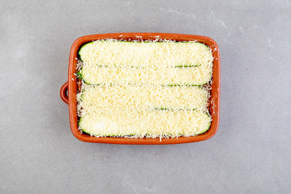 Ca. 1/3 der Linsen auf dem Boden der Auflaufform verteilen, mit 1/3 der Ricottacreme bestreichen und diese mit 1/3 der Zucchini belegen. Den Vorgang wiederholen, bis alles aufgebraucht ist. Den restlichen Käse auf der Lasagne verteilen und die Lasagne und im Ofen 20–30Min. backen, bis der Käse goldbraun zerlaufen ist.