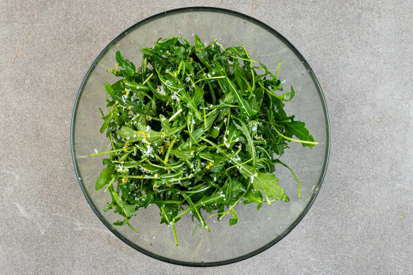 mit feinem Rucola-Käse-Salat