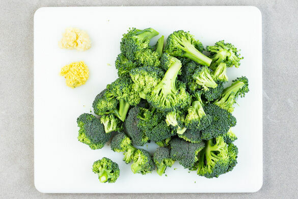 Den Brokkoli in mundgerechte Röschen schneiden.