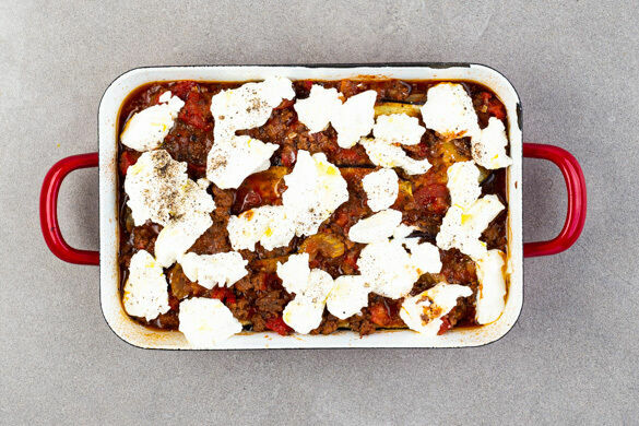 Wer bei Lasagne automatisch an Nudelblätter denkt, der hat unsere heutige Variante noch nicht kennengelernt: Wir betten die herzhafte Füllung aus Schweinehack, Tomaten und Sellerie nicht zwischen die üblichen Pastablätter, sondern verwenden stattdessen Auberginenscheiben. Das spart Kohlenhydrate – vor allem aber schmeckt es hervorragend. Cremiger Ricotta und frisches Basilikum bilden den krönenden Abschluss. Einfach köstlich!