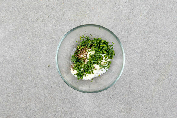 Die ½ der Estragonblätter oder mehr von den Stängeln zupfen und fein schneiden. 2EL Mayonnaise mit dem Estragon und ½TL hellem Essig verrühren und den Dip mit Salz und Pfeffer abschmecken.