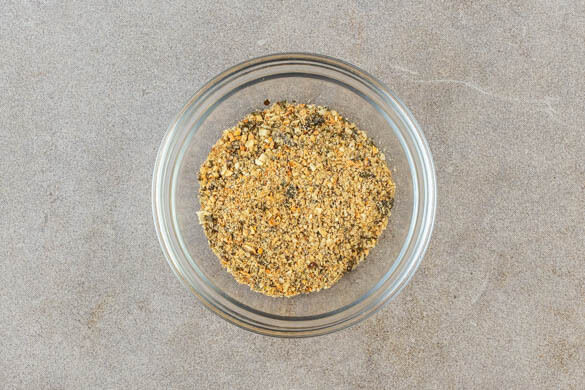 Die Pasta in das kochende Wasser geben und in 8–10Min. bissfest kochen. Ca. 1 Tasse Pastawasser abschöpfen, dann die Pasta in ein Sieb abgießen und abtropfen lassen. Die Kürbiskerne in der kleinen Pfanne ohne Zugabe von Fett bei mittlerer Hitze 2–4Min. anrösten. Aus der Pfanne nehmen und mit den restlichen Hefeflocken sowie 1 Prise Salz in einem Mörser fein zerstoßen.