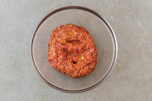 Den Backofen auf 220°C (200°C Umluft) vorheizen. 1 Ei aufschlagen und verquirlen. 1EL Ei für Schritt 3 aufbewahren, das restliche Ei mit dem Hackfleisch, der ½ des Panko-Paniermehls, der Gewürzmischung, der Sojasauce, ½TL Senf und je 1 kräftige Prise Salz und Pfeffer gut vermengen.