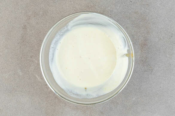Die saure Sahne mit 1TL Senf, ½TL Honig und 2 Prisen Salz verrühren, mit Pfeffer abschmecken.