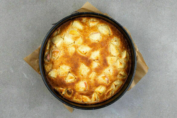 Den Backofen auf 195°C (175°C Umluft) vorheizen. Eine Springform (Ø20–22cm) mit 1EL Butter fetten oder mit Backpapier auslegen. 60g Butter abwiegen und Raumtemperatur annehmen lassen. Die Äpfel vierteln, entkernen und in 1–2cm große Stücke schneiden.