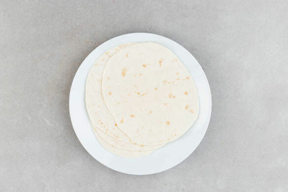 4 Tortillas aufeinanderstapeln und bei 800W 35–40Sek. in der Mikrowelle erwärmen. Den Vorgang mit weiteren 4 Tortillas wiederholen. Tipp: Wer keine Mikrowelle hat, kann die Tortillas auch in einer Pfanne oder in Alufolie gewickelt im Ofen erwärmen.