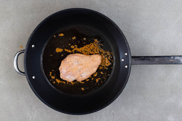 Die restliche Gewürzmischung mit 4EL Joghurt und 1 Prise Salz verrühren. Das Fleisch trocken tupfen, mit dem Würzjoghurt einreiben und in einer großen Pfanne mit 2EL Pflanzenöl bei starker Hitze auf jeder Seite ca. 2Min. scharf anbraten. Die Hitze reduzieren und das Fleisch auf jeder Seite weitere 3–4Min. braten, bis es gar ist.