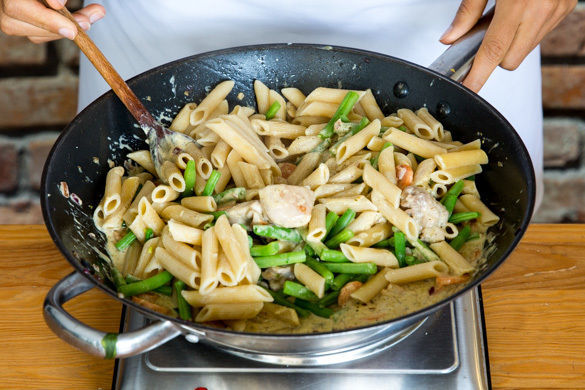 Die Penne in das kochende Wasser geben und in 7–9Min. bissfest kochen.