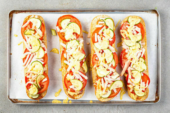 Dieses offene Sandwich schreibt Geschichte, zumindest in deinen Koch-Memoiren! Knuspriges Baguettebrötchen belegt mit frischer Tomate, einer neckischen Lage Goudakäse, deftiger Chorizo und darauf: sauer eingelegte Gurken. Gut soweit? Na, dann warte nur, bis die cremige BBQ-Sauce und noch eine schmelzende Schicht Käse ins Spiel kommen ... So! Lecker!