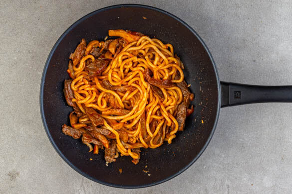 Du hast Lust auf einen kulinarischen Ausflug nach Asien? Dann haben wir hier das ultimative Streetfood-Gericht für dich! Heute kommt alles in einen Wok oder eine Pfanne: frische Udon-Nudeln, saftiges Rindergeschnetzeltes und feine Austernpilze, schön scharf mit koreanischer Chilipaste und aufgepeppt mit Sojasauce und geröstetem Sesamöl. Als Beilage servierst du einen würzigen Gurkensalat. Auf geht’s!