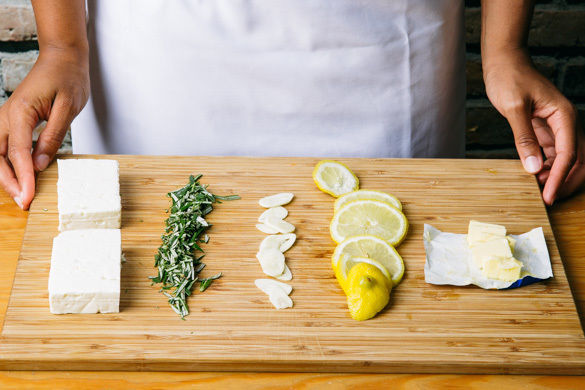 „En papillote“ ist eine Garmethode, bei der die Zutaten z. B. in einem Stück Backpapier eingeschlagen und dann gebacken werden. Beim Backen austretende Säfte werden dadurch zum schonenden Dämpfen der Zutaten genutzt. Am besten die Päckchen erst direkt am Tisch öffnen – denn den aromatischen Duft von Zitrone und Fetakäse will sich deine Nase nicht entgehen lassen!