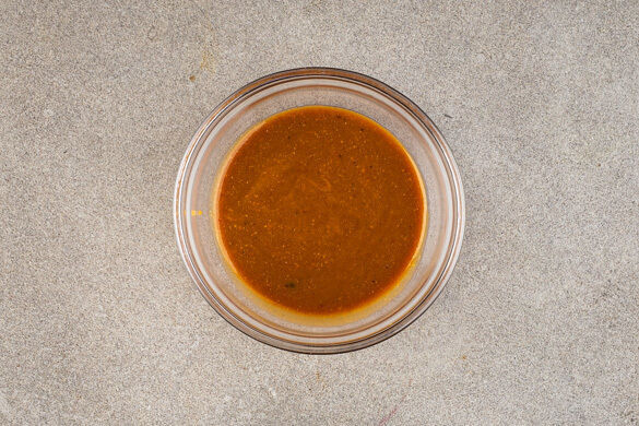 Die Limette halbieren und auspressen. Den Limettensaft mit der Fischsauce, der Misopaste und 4EL Wasser verrühren.
