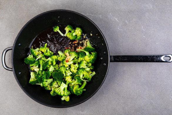 Den Ingwer schälen und in feine Würfel schneiden. Ca. 2/3 der Hoisinsauce, Ingwer nach Geschmack und die Chili in der Pfanne 2–3Min. bei niedriger Hitze kurz erwärmen und mit etwas Limettensaft abschmecken. Tipp: Wer mag, kann mehr Hoisinsauce verwenden. Den Brokkoli mit der Sauce vermengen.