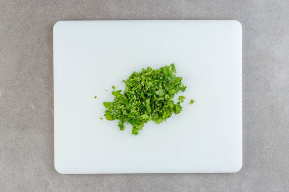 Die Minzeblätter abzupfen, fein schneiden und mit dem Joghurt und 1EL Essig verrühren. Mit Salz und Pfeffer abschmecken.
