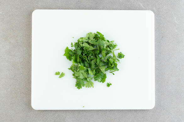 Den Koriander samt Stängeln grob schneiden. Den Reis mit einer Gabel auflockern und auf Teller oder Schalen verteilen. Das Hackfleisch darauf anrichten und mit dem Koriander und den restlichen Lauchzwiebeln garniert servieren.