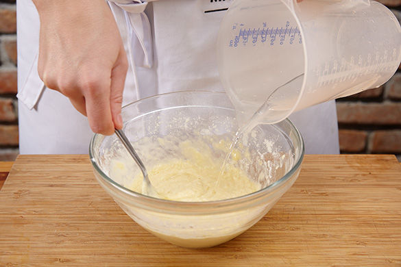 In einer großen Schüssel 100g Mehl mit 150ml Wasser sowie etwas Salz zu einem sehr dickflüssigen Teig vermengen, notfalls etwas mehr Wasser zugeben, und darin die Schnitzel einlegen. Die Cornflakes auf einem großen Teller mit den Händen etwas zerbröseln.