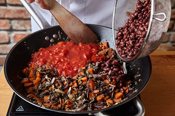 Dieser wärmende Reisauflauf ist wahres Futter für die Seele. Die schwarzen Bohnen sind reich an wichtigen Ballaststoffen und eine Portion Gemüse liefert allerlei Vitamine. Verfeinert wird das Ganze mit südamerikanischen Gewürzen. Schnapp dir schnell einen Teller und los geht’s!